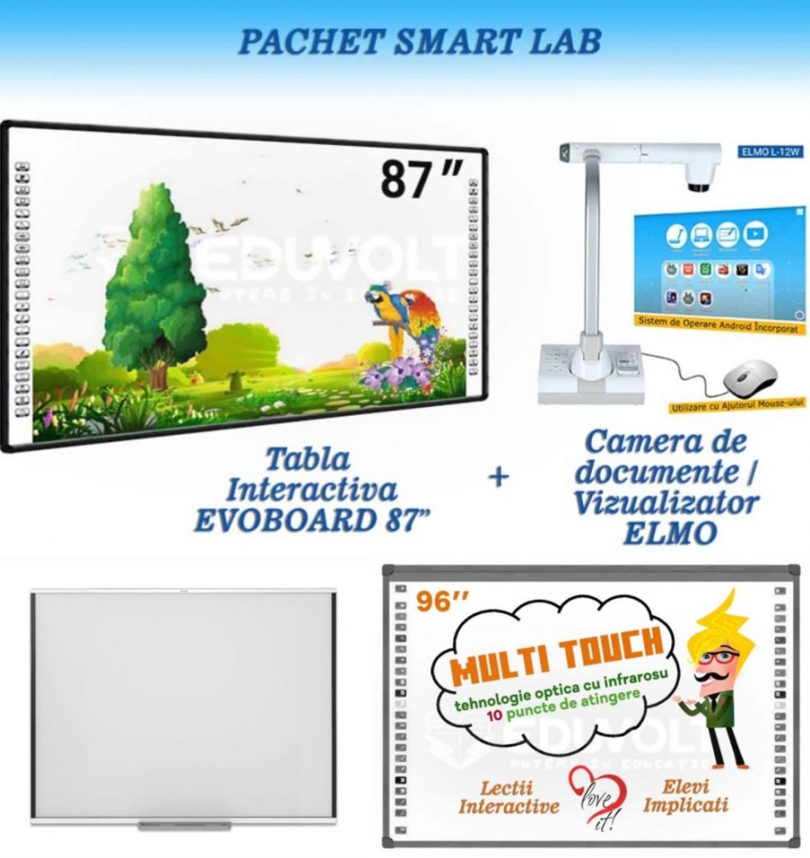 1. Pachet SMART LAB – Tablă Interactivă 87″ + Vizualizator ELMO L-12G
