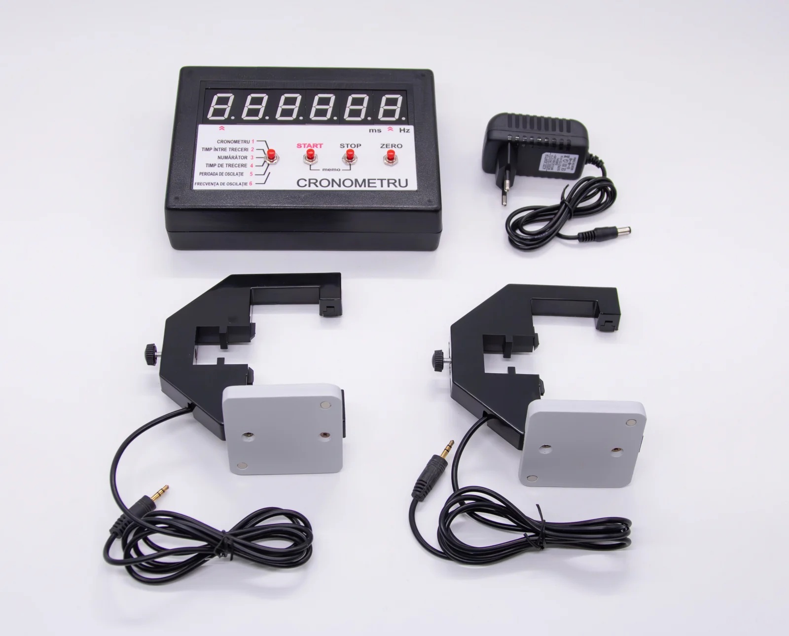 Programe de lucru: cronometru, timp între treceri, numărător, timp de trecere, perioada de oscilație, frecvență de oscilație