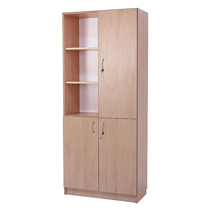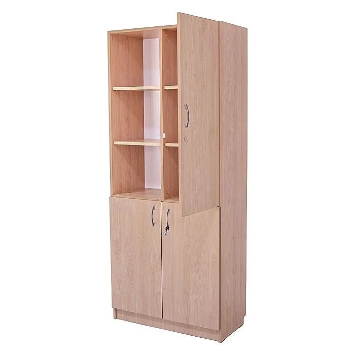 Dulapul are doua parti: compartimentul superior cu 2 polite mobile si
