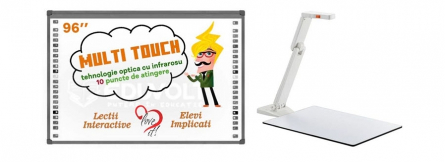 - Tabla Inteligentă 96" Interactivă Școlară 10 Atingeri EvoBoard IB-96P: Această tablă oferă un suport interactiv avansat în lecții, facilitând participarea și colaborarea elevilor. Tehnologia multi-touch permite multiple interacțiuni simultane, fiind ideală pentru activitățile practice din clasă.
