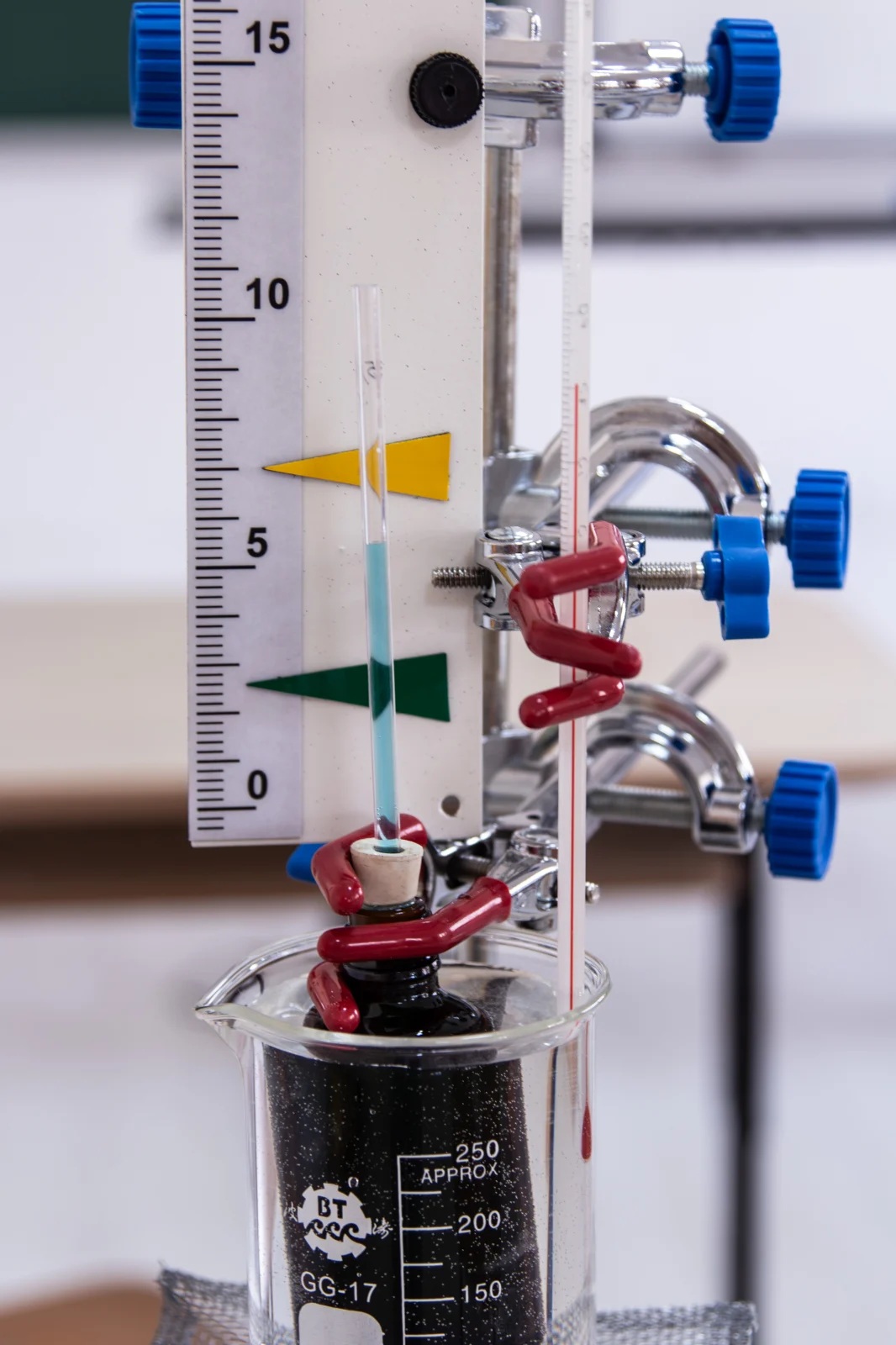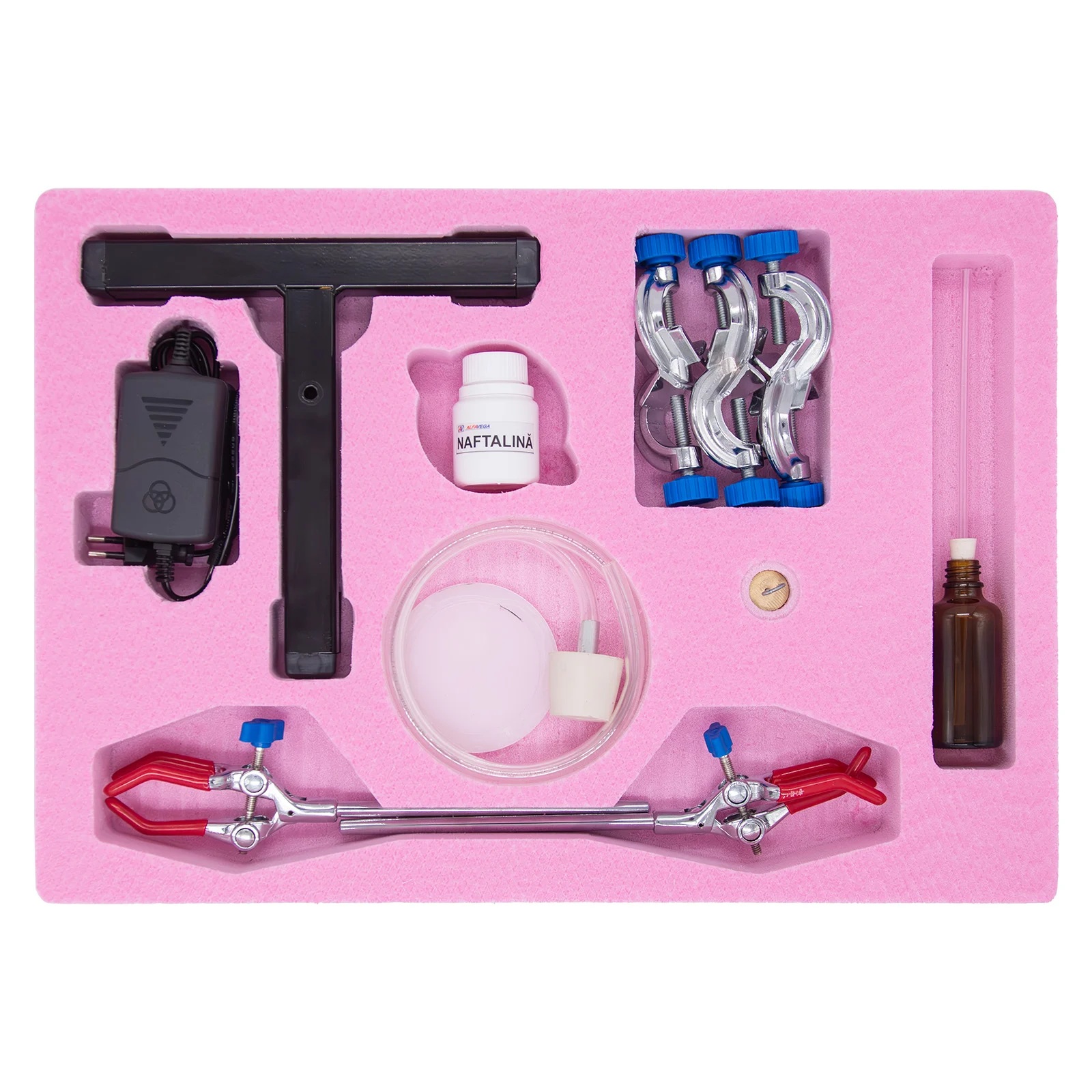 NOUTATI: - fixarea magnetica a componentelor pe placa verticala de montaj - termometru electronic cu senzor in teaca - propagarea caldurii prin convectie - model de motor termic Modulul este ambalat in doua cutii. Componenta: Modulul are minim 32 componente din care: - suport, tije, tuburi, sticlute cu tub, corp cilindric cu carlig, spirtiera, naftalina, dop cu tuburi, tave, vase, calorimetru, panou vertical de montaj, etc. Se introduc in plus componentele: spirala de hartie, suport pentru spirala cu cui. Experimente realizabile: 1. Masurarea temperaturii 2. Studiul echilibrului termic 3. Dilatarea solidelor 4. Dilatarea lichidelor 5. Dilatarea gazelor 6. Propagarea caldurii prin conductie 7. Propagarea caldurii prin convectie 8. Propagarea caldurii prin radiatie 9. Calorimetrie: determinarea caldurii specifice a solidelor si a lichidelor 10. Studiul topirii si a solidificarii 11. Determinare caldurii latente de topire a ghetii 12. Studiul calitativ al fierberii 13. Condensarea vaporilor 14. Fierberea la presiuni mai mici sau mai mari decat presiunea atmosferica 15. Determinarea randamentului unui incalzitor 16. Studiul difuziunii 17. Principiul de functionare al unui motor termic Componentele sunt stocate in compartimente corespunzatoare formate in placi de spuma poliuretanica si sunt ambalate in cutii de carton rezistente, astfel se asigura stocarea lor ordonata.