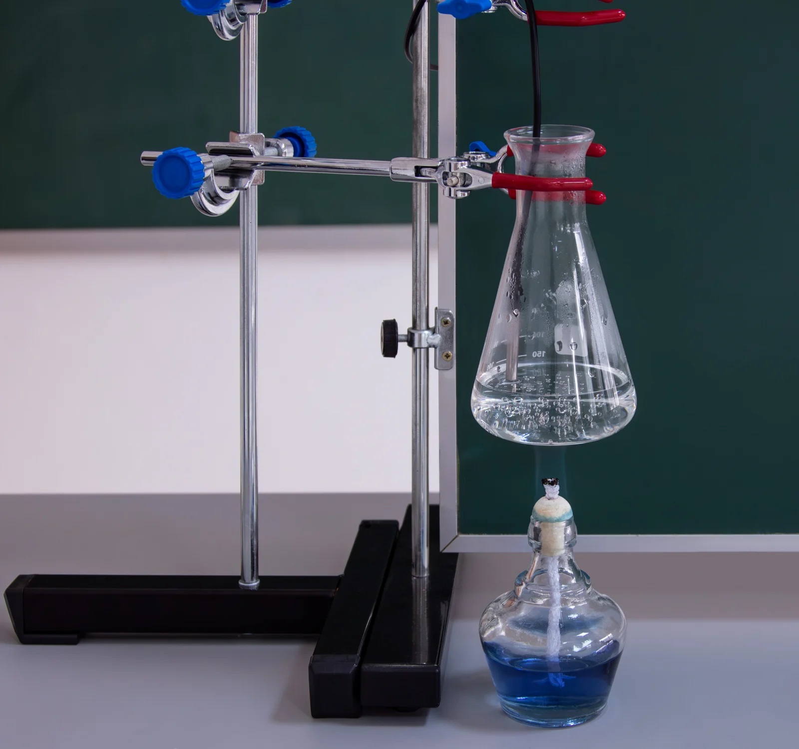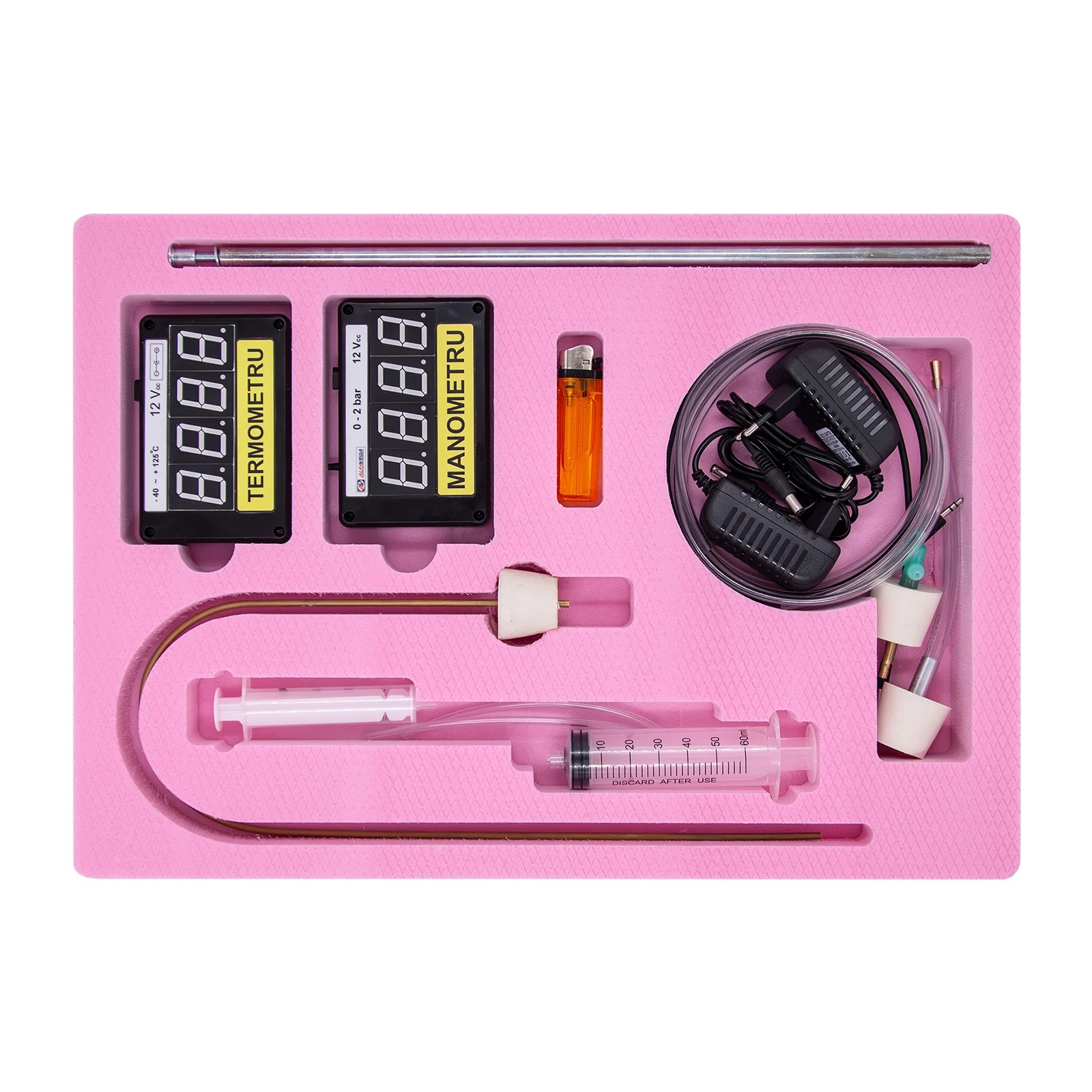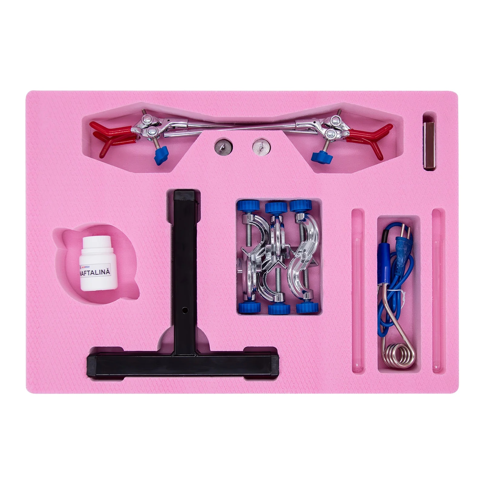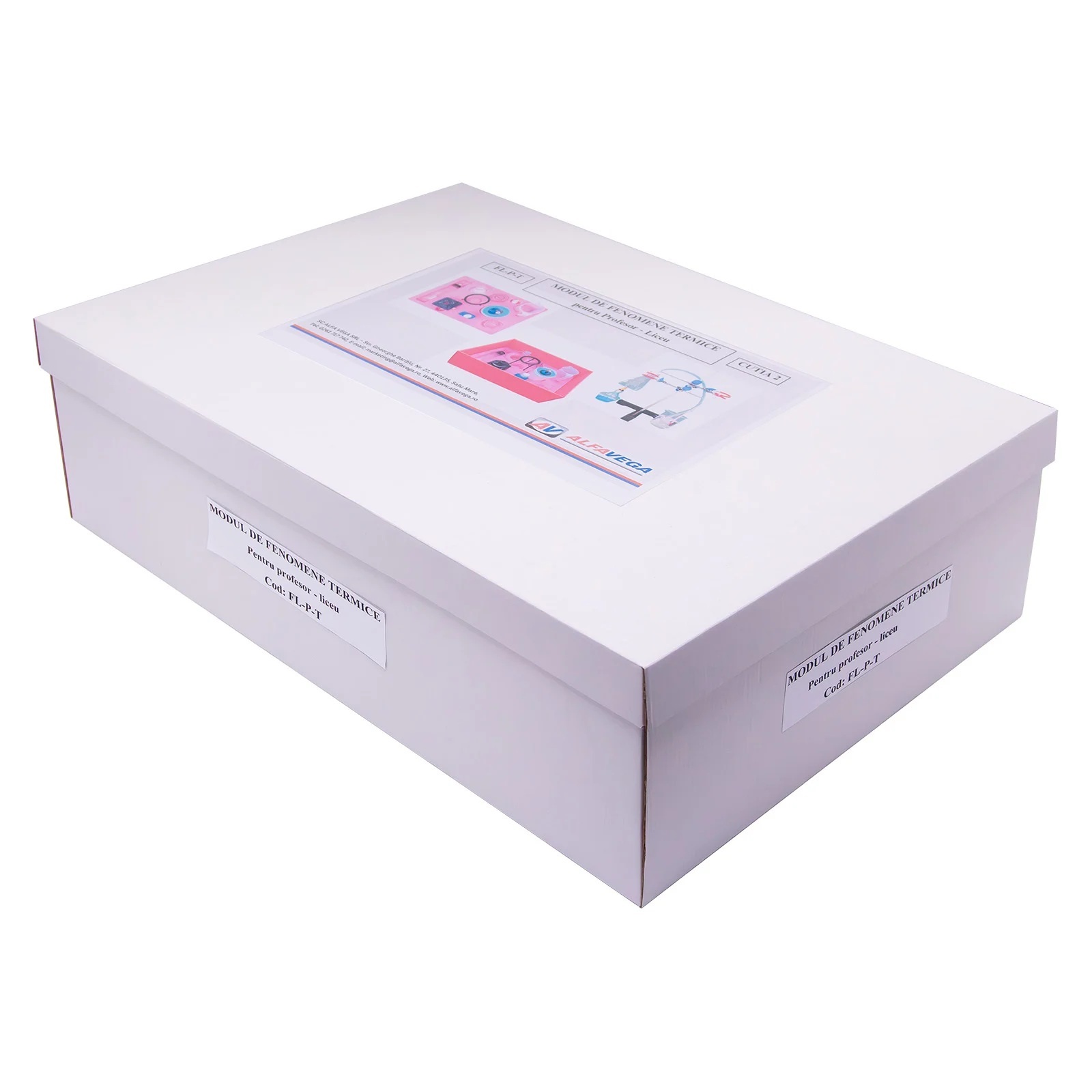 NOUTATI: - fixarea magnetica a componentelor pe placa verticala de montaj - termometru si manometru electronic, verificarea legilor gazului ideal - arderea in spatiu limitat Modulul este ambalat in doua cutii plus tabla vertical de montaj. Componenta: Modulul are minim 33 componente dintre care: - manometru, termometru, aparat de distilare, dop cu sonda de temperatura cu stut de alama, tuburi, spirtiera, naftalina, tave, flacon cu lumanare, calorimetru, vase, palnie, panou vertical de montaj, etc. Experiente realizabile: 1. Masurarea temperaturii 2. Masurarea presiunii 3. Studiul echilibrului termic a doua lichide cu temperaturi diferite. 4. Legile gazelor ideale 5. Calorimetrie: determinarea caldurii specifice a solidelor si a lichidelor 6. Studiul topirii 7. Determinarea caldurii latente specifice de topire 8. Studiul fierberii 9. Condensarea vaporilor 10. Determinarea caldurii latente specifice de vaporizare 11. Fierberea la presiuni mai mici sau mai mari decat cea atmosferica 12. Determinarea randamentului unui incalzitor 13. Distilarea 14. Arderea in spatiu limitat Componentele sunt stocate in compartimente corespunzatoare formate in placi de spuma poliuretanica si sunt ambalate in cutii de carton rezistente, astfel se asigura stocarea lor ordonata.