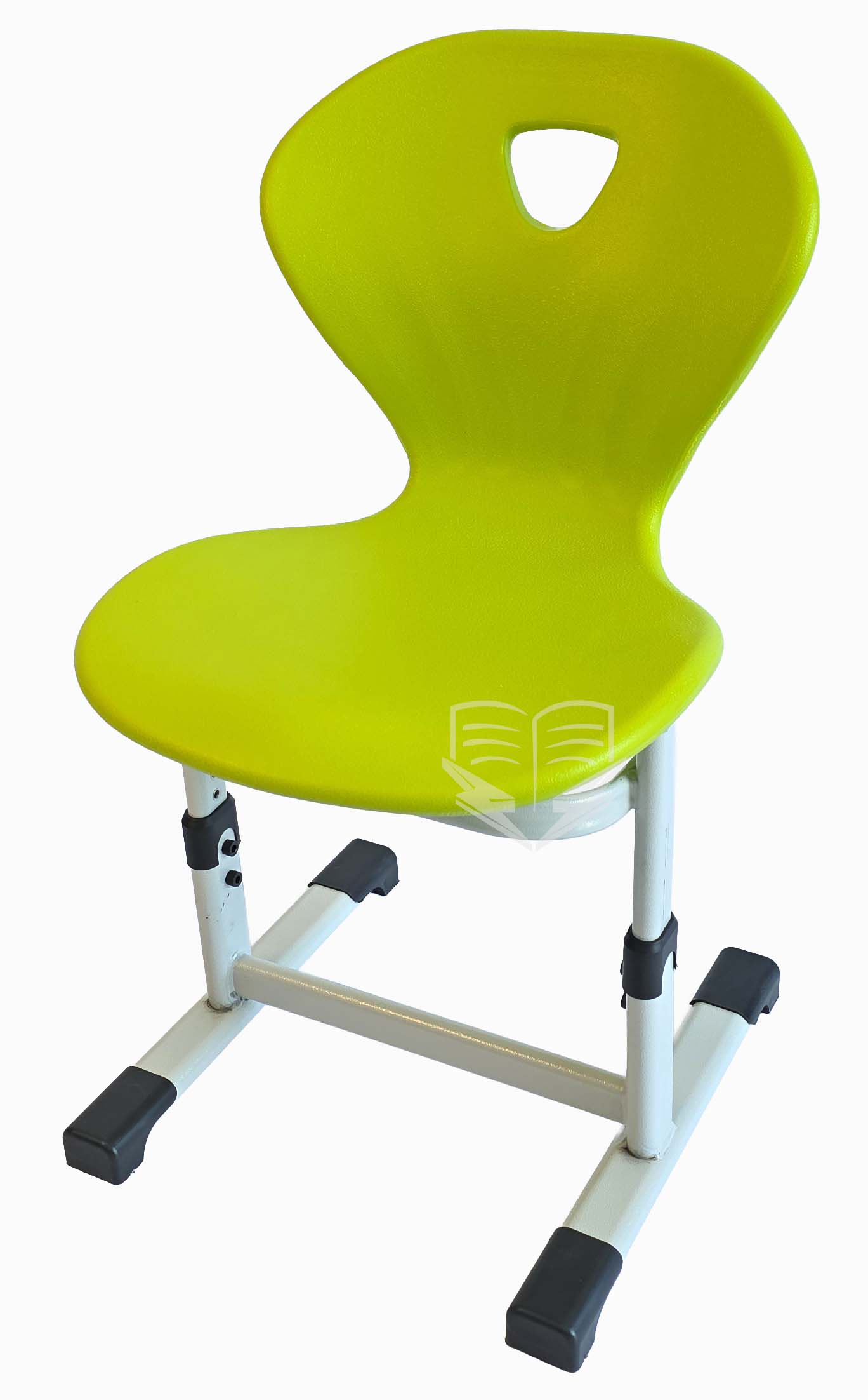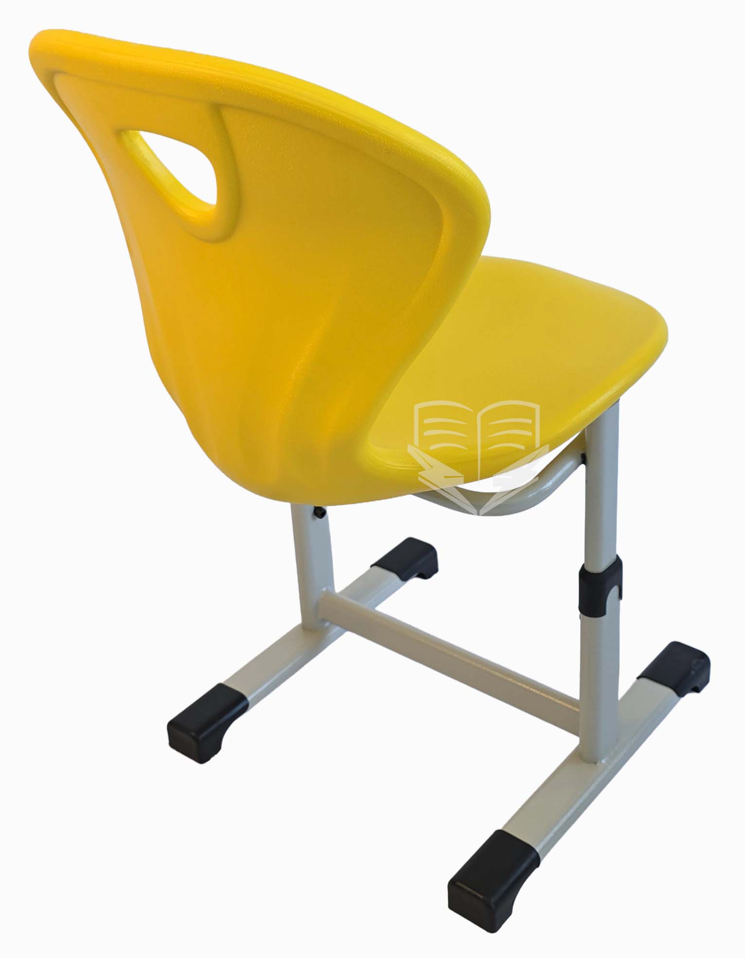 Scaunul este confectionat pe o structură metalică din țeavă ovală robustă, vopsită în câmp electrostatic, iar șezutul foarte rezistent este tip scoică, ergonomică, ceea ce îi conferă un plus de confort la utilizare. Spătarul oferă o oarecare flexibilitate față de șezut și oferă suport lombar pronunțat, încurajând o bună poziție și respirație a elevului. Scaunul LYON are posibilitatea de reglare în mai multe trepte de înălțime, putând fi folosit in toate ciclurile de învățămât. Greutatea maximă corporală recomandată pentru uz școlar: 130 Kg.